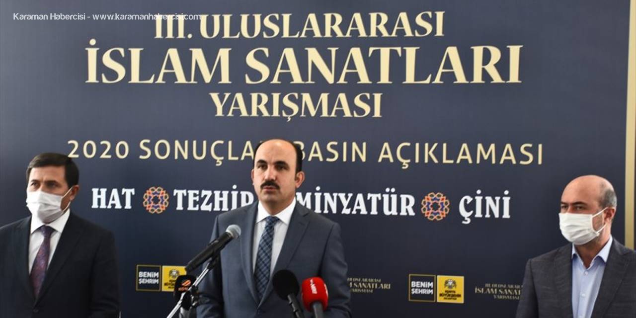Altay, Konya'nın günümüzde de hat, tezhip, minyatür ve çini gibi sanatların en üst seviyede icra edildiği bir merkez konumunda olduğunu dile getirerek, "Konya'mızda geleneksel olarak düzenlediğimiz Uluslararası İslam Sanatları Yarışması büyük önem arz etmektedir. Bu yıl üçüncüsünü gerçekleştirdiğimiz Uluslararası İslam Sanatları Yarışması'na hat alanında 40, tezhip alanında 38, minyatür alanında 26, çini alanında 50 olmak üzere birbirinden değerli 160 eser katılmıştır. Ağırlığı ülkemizden olmak üzere Cezayir, Endonezya, Irak, İran, Malezya, Mısır ve Suriye'den gelen eserler sergimizde bulunmaktadır." diye konuştu.