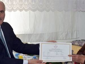 87 Yaşındaki Dudu Teyze Okur Yazarlık Belgesini Vali Sayın Fahri Meral ile Eşi Hanımefendi Zehra Meral’in Elinden Aldı.