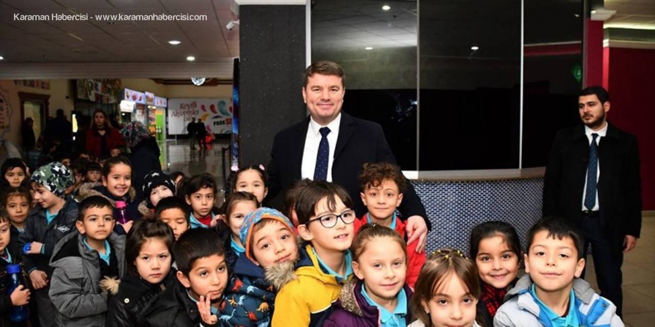 Aksaray Belediye Başkanı Evren Dinçer, "Rafadan Tayfa Göbeklitepe" filmini öğrencilerle birlikte izledi.