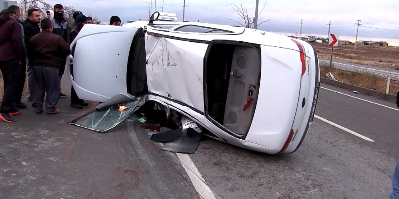 Aksaray'da sürücüsünün direksiyon hakimiyetini kaybettiği otomobil karşı şeride geçerek takla attı. Kazada 1'i bebek 4 kişi yaralandı.