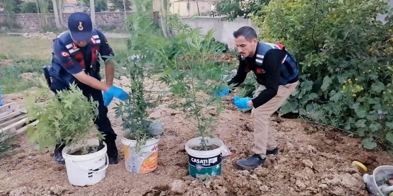 Aksaray'da müstakil evinin bahçesinde kovalarla kenevir yetiştirilmesi jandarmanın radarına takıldı.