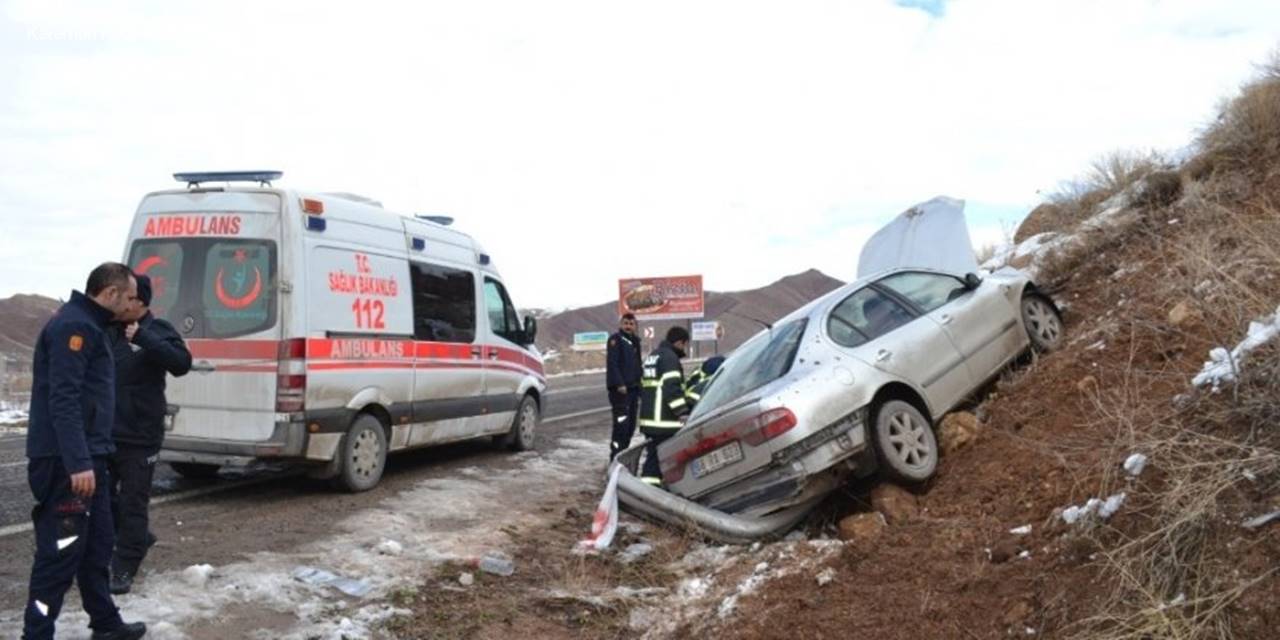 Aksaray'da otomobilin yol kenarında bulunan toprak alana çarpması sonucu meydana gelen trafik kazasında 1'i ağır 2 kişi yaralandı.