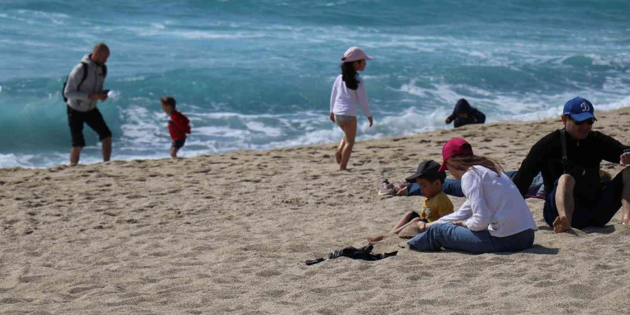 Alanya’da Güneşli Havayı Fırsat Bilenler Plaja Akın Etti