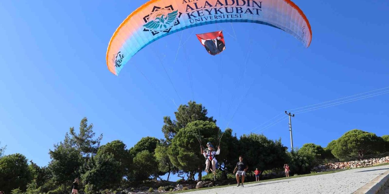 ALKÜ Spor Bilimleri Fakültesi, ALKÜ Hava ve Doğa Sporları Kulübü, Türk Hava Kurumu Alanya Şubesi, Alanya Sportif Havacılık Kulübü ve UluSky Tandem Yamaç Paraşütü iş birliğinde 15 Temmuz Demokrasi ve Milli Birlik Günü etkinliği gerçekleştirildi. İlk olarak hain darbe girişiminde birlik ve beraberliğin sembolü olan selanın temsiline ithafen ALKÜ Abdurrahman-Nimet Alaattinoğlu Camii önünde "Ay Yıldız Uğruna, Türkiye Aşkına" yazılı pankartın açılmasının ardından Dinek mevkiinde bulunan Hıdırellez Tepesi ve Yassı Tepe'ye geçildi. Ardından, ALKÜ akademisyen ve öğrencileri tarafından oluşan Yamaç Paraşütü pilotları eşliğinde jandarma, polis, doktor, öğretmen, işçi ve çiftçi gibi 6 farklı meslek grubundan birer temsilci ile yamaç paraşütü uçuşu yapıldı. Uçuşun devamında, şehit ve gaziler anısına gökyüzünde Türk bayrağı dalgalandırıldı ve millet olarak birlik ve beraberliğin önemi vurgulandı. Yamaç paraşütü pilotları uçuşun sonunda, Kleopatra Plajı'na iniş yapmasının ardından ALKÜ'lü akademisyenler ile öğrencileri tarafından "Türk Bayrağı" ve "Türkiye Aşkına" posteri açılarak, milli birlik ve beraberliğin gücü temsil edildi.