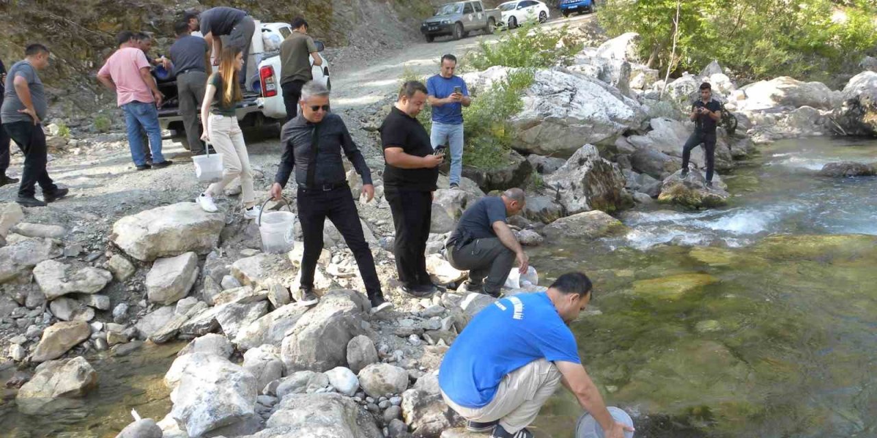 Antalya'da Ortakonuş Alara Çayı'na 5 bin adet kırmızı benekli doğal alabalık yavruları bırakıldı.