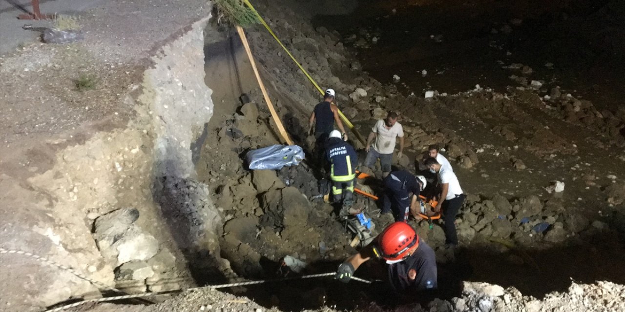 İnşaattaki suyu tahliye etmeye çalışan Yılmaz Turan (39) kayan toprağın altında kaldı.