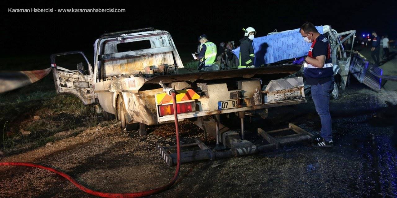 Antalya'nın Korkuteli ilçesinde çekici ile kamyonetin çarpıştığı kazada, alev alan kamyonetteki 2 kişi yanarak yaşamını yitirdi.