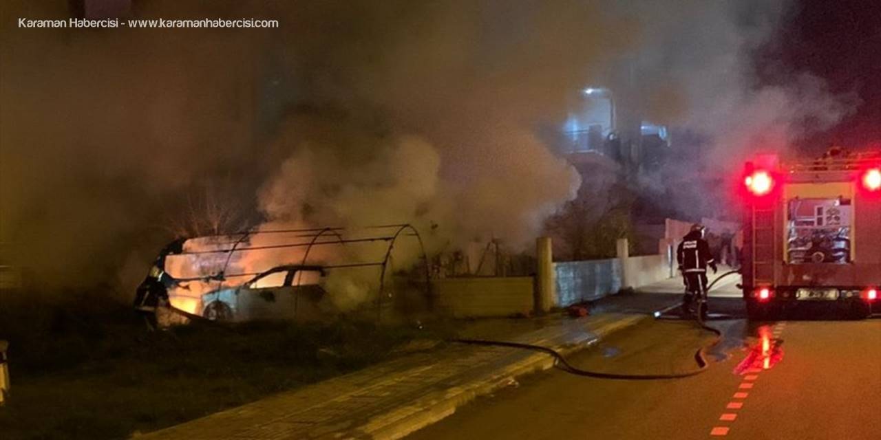 Bölgeye sevk edilen ekiplerce söndürülen yangında, araç kullanılamaz hale geldi.