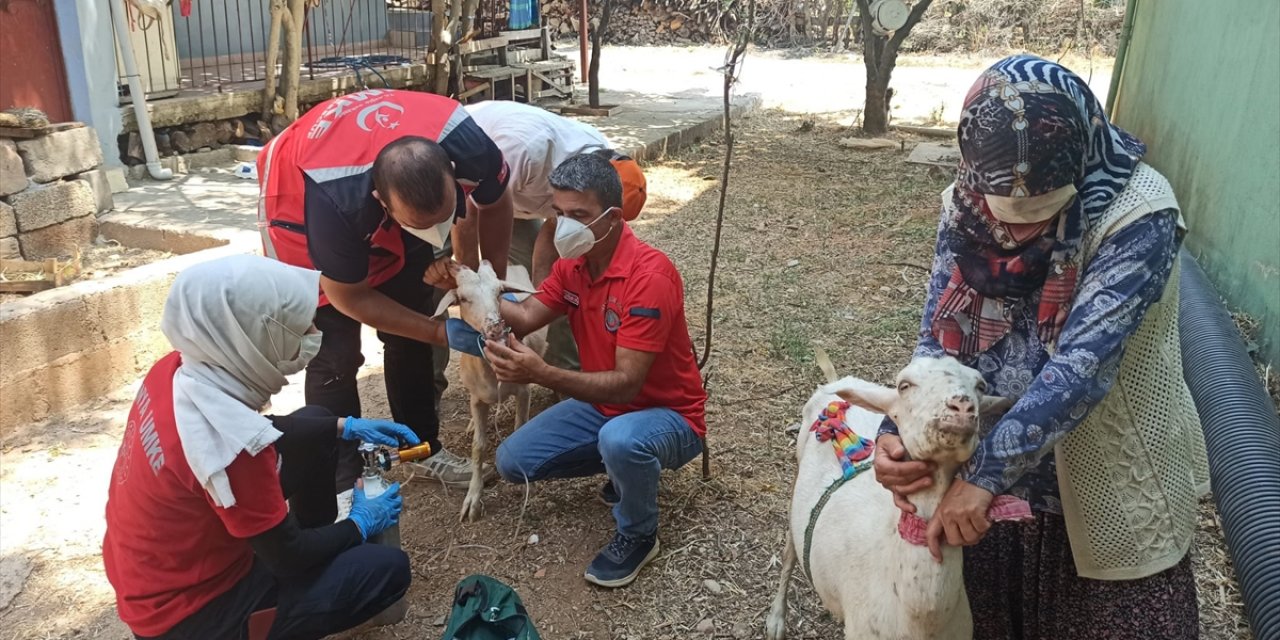 Keçilere, UMKE ekibinde görev yapan ve aynı zamanda veteriner sağlık teknikerleri olan Alparslan Ercan ile Turan Sevim tarafından müdahale edildi.