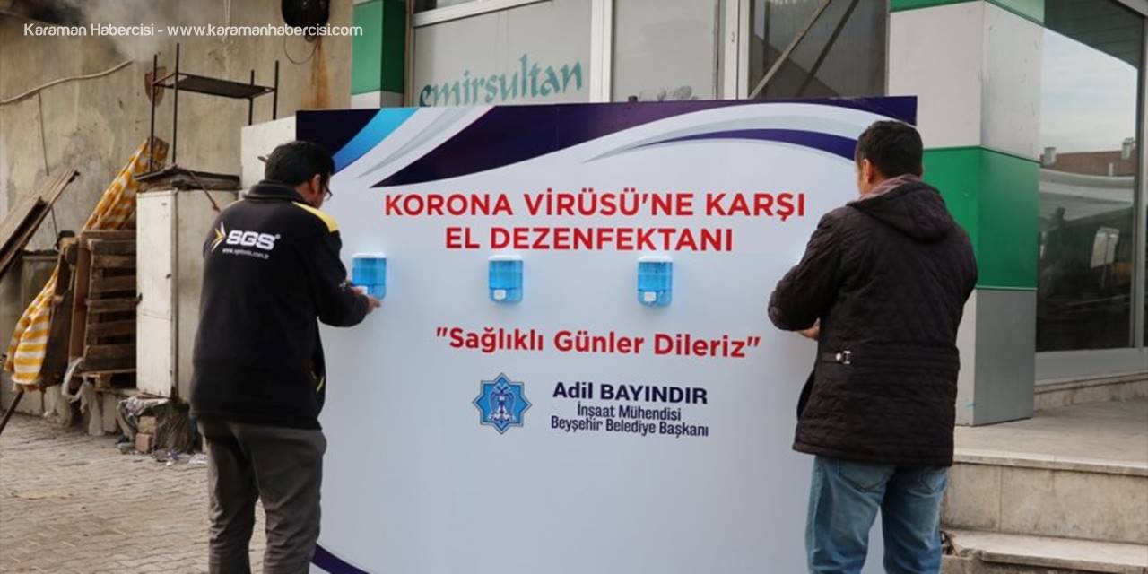 Konya'nın Beyşehir ilçesindeki pazar yerinde, yeni tip koronavirüse (Kovid-19) karşı önlem almak amacıyla dezenfekte standı kurulduğu bildirildi.
