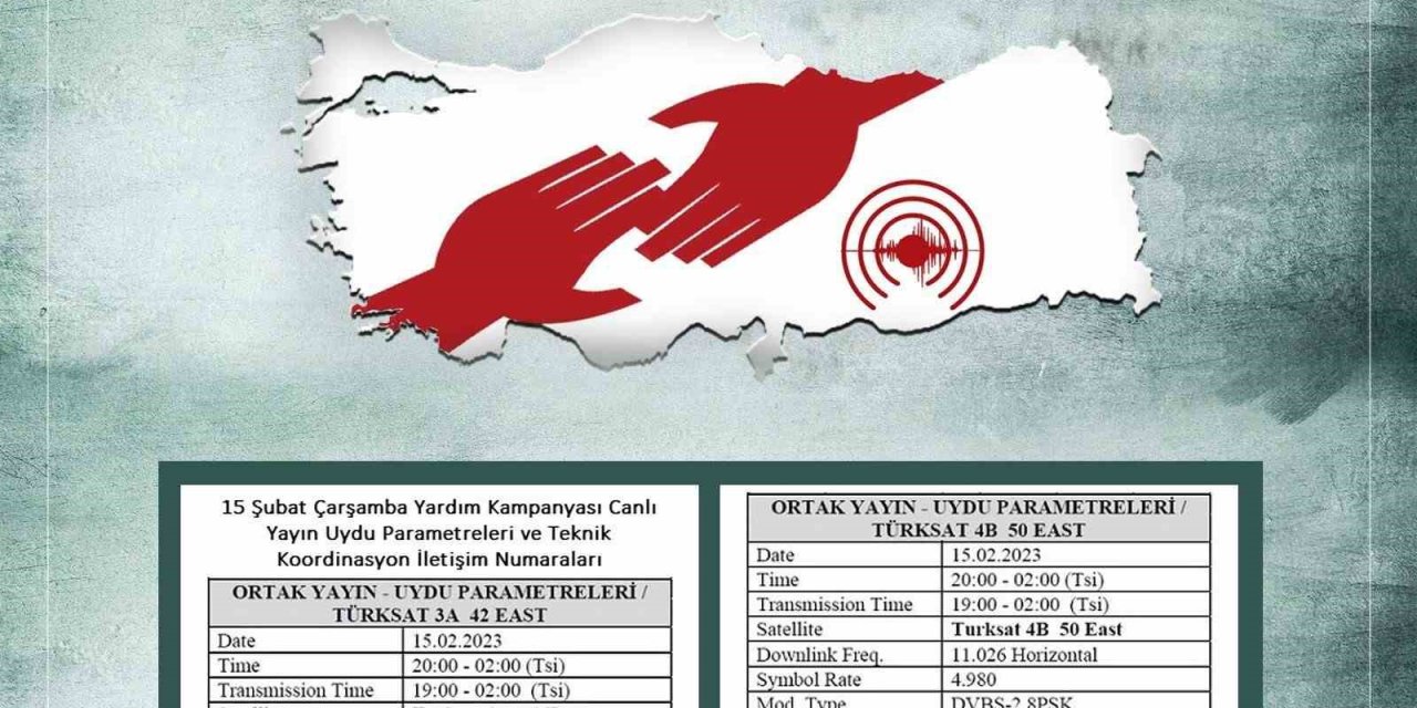 Türkiye'nin yüreğinde derin yaralar açan, son yüzyılın en büyük deprem felaketinin yaşandığı bu günlerde televizyon kanalları yardım için ortak yayında bir araya geliyor. 15 Şubat Çarşamba akşamı saat 20.00'de gerçekleşecek olan ortak yayının frekansları belli oldu.