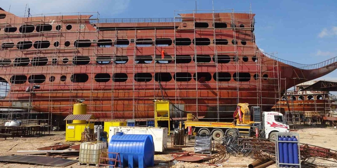 Manavgat tersaneler bölgesinde Alanyalı iş adamı Hasan Çavuşoğlu tarafından yaklaşık 130 milyon TL'ye yapılacak olan 5 katlı günübirlik tur teknesi aynı anda bin 163 misafiri ağırlayabilecek.