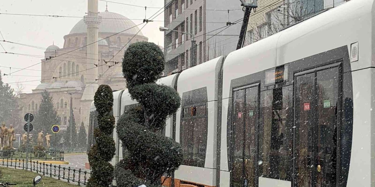 Eskişehir'de öğle saatlerinde başlayan kar yağışı aralıklarla devam ediyor.