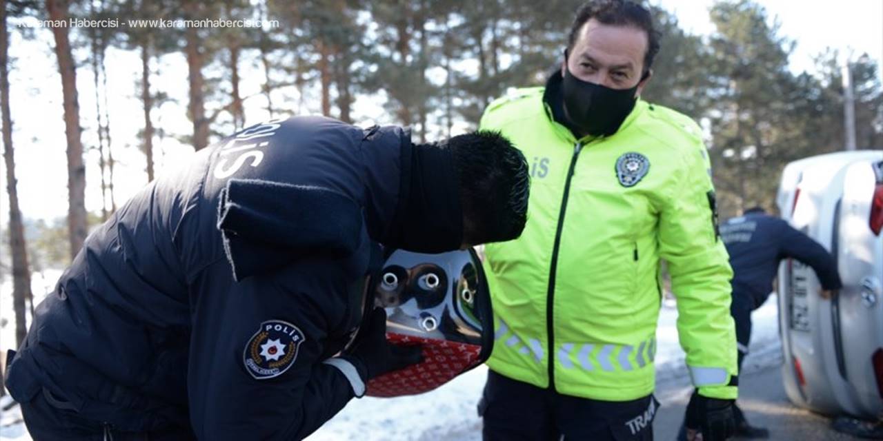 Eskişehir'de Kaza Yapan Araçta Ürken Kediyi Polis Sakinleştirdi