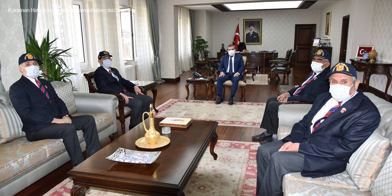 Karaman Valisi Mehmet Alpaslan Işık, Türkiye Muharip Gaziler Derneği Karaman Şube Başkanı Behiç Baş ve yönetim kurulu üyelerini kabul etti.