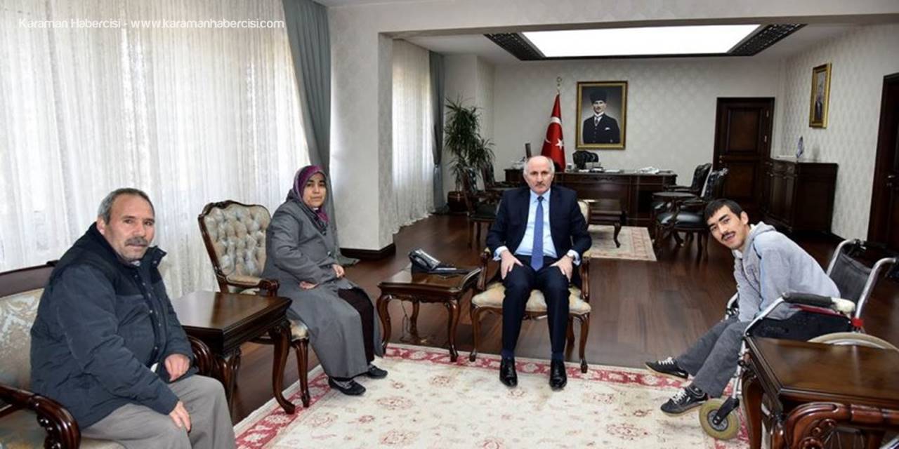 04 Şubat 2019 Pazartesi günü gerçekleşen ziyarette Karaman halkının yakından tanıdığı ve sevdiği simalardan birisi olan Enes ile yakından ilgilenen Vali Meral, ziyarette Enes ve ailesi ile makamında bir süre sohbet ederek sorun ve taleplerini dinledi.