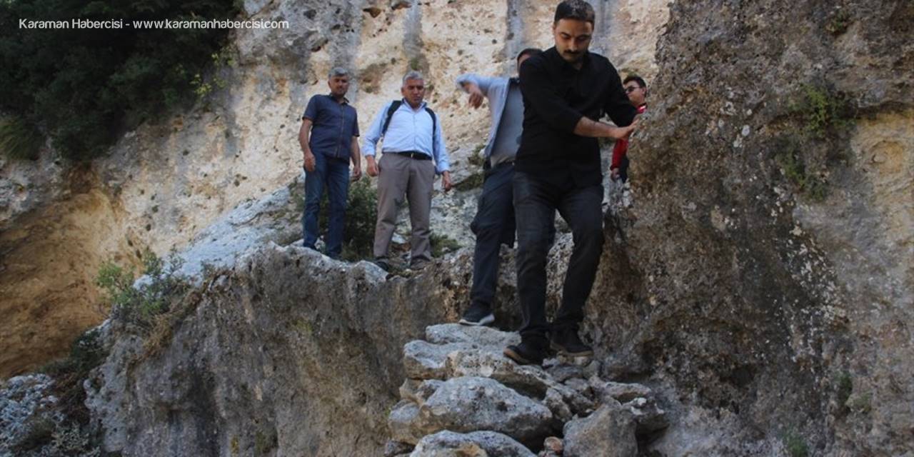 Gülnar Kaymakamı Mustafa Ayvat, Gülnar Belediye Başkanı Alpaslan Ünüvar ve beraberindekiler İshaklar Mahallesi'ndeki Güldürgü Kanyonu'nda incelemede bulundu.