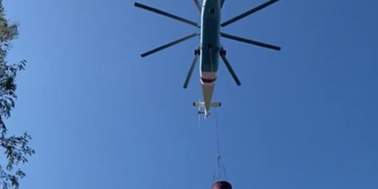 Aksu ilçesinde öğle saatlerinde çıkan orman yangınında 1,8 hektar küle dönerken, bölgede havadan ve karadan soğutma çalışmaları devam ediyor. Çalışmaları yerinde görüntüleyen gazeteciler soğutma çalışması yapan helikopterin bıraktığı tonlarca suyu fark etti. Koşarak araca sığınan gazeteciler ıslanmaktan son anda kıl payı kurtuldu. O anlar cep telefonu kamerasına saniye saniye yansıdı.