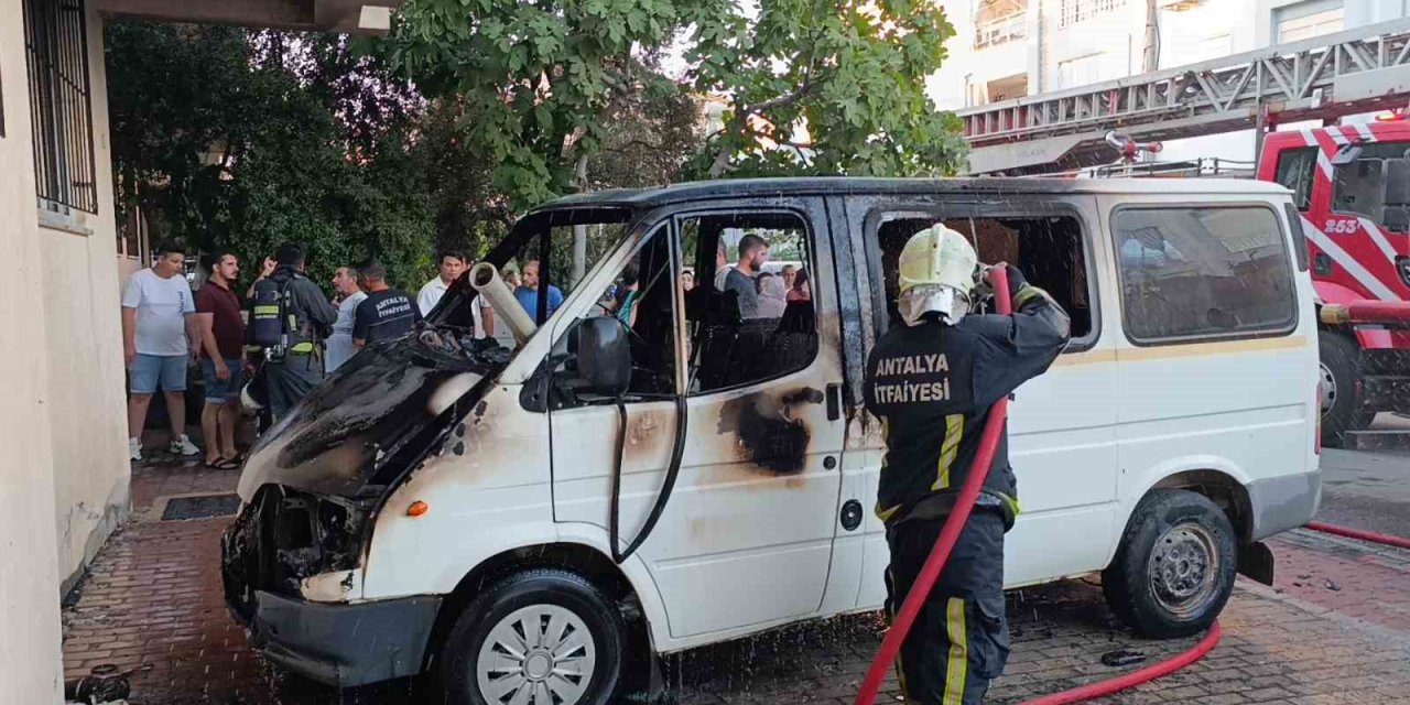 Manavgat ilçesinde park halindeki servis aracı, motor bölümünden çıkan yangın sonucunda tamamen yanarak kullanılamaz hale geldi. Araç sahibi, 5 dakika önce köyden evine geldiğini, aracını park edip eve çıktığı sırada aracının yanmaya başladığını söyledi.