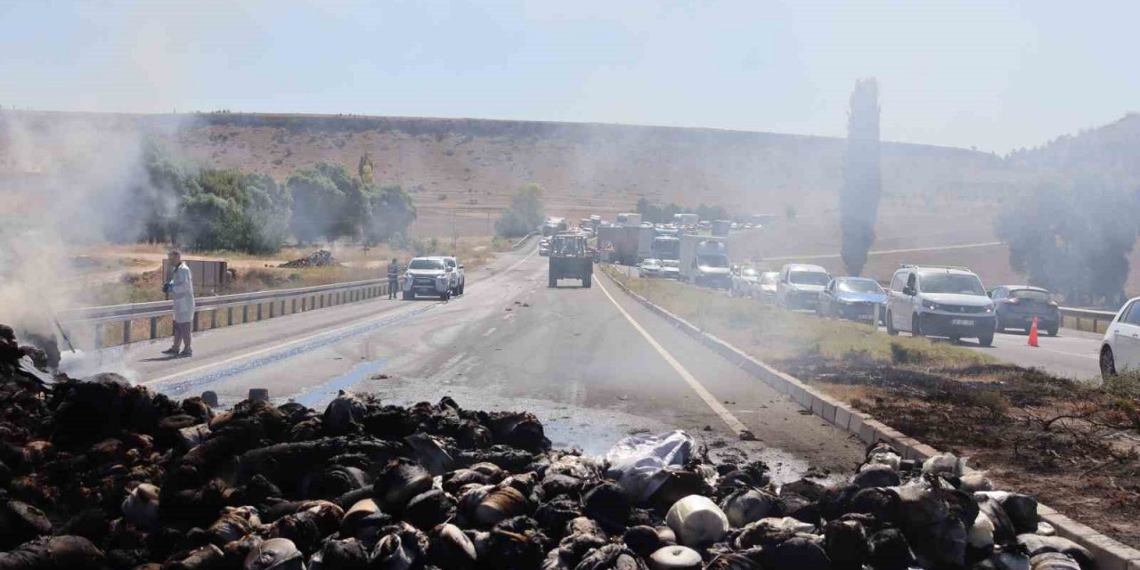 İplik Yüklü Tır Cayır Cayır Yandı, Kilometrelerce Araç Kuyruğu Oldu