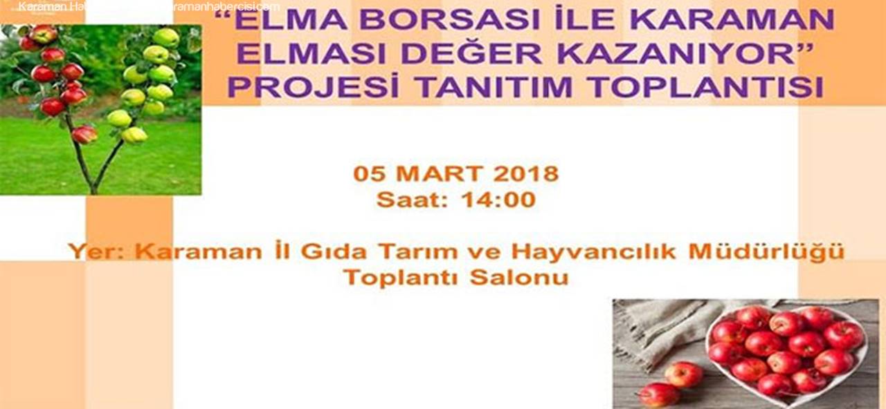 KOP Bölge Kalkınma İdaresi Başkanlığı tarafından 2017 Yılı Kırsal Kalkınma Mali Destek Programı kapsamında İl Gıda Tarım ve Hayvancılık Müdürlüğü tarafından hazırlanan "Elma Borsası ile Karaman Elması Değer Kazanıyor" Projesi hayata geçiyor.