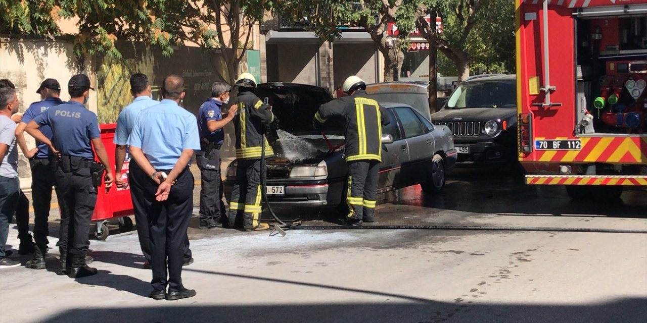 Karaman’da park halindeyken yanan bir otomobil itfaiye ekipleri tarafından söndürüldü.