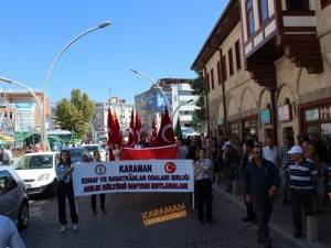 Karaman’da Etkinlikler kapsamında ilk olarak Cumhuriyet Parkında tören düzenlendi. Törene, Vali Fahri Meral, Karaman Milletvekili İsmail Atakan Ünver, Belediye Başkanı Ertuğrul Çalışkan, Vali Yardımcısı Hacı İbrahim Türkoğlu, İl Emniyet Müdürü Fikret Bayraktar, İl Jandarma Komutanı İsmail Şahin, AK Parti İl Başkanı Mehmet Er, Esnaf ve Sanatkâr odaları Birliği başkanı Bayram Uysal, oda temsilcileri, daire müdürleri, esnaflar ve vatandaşlar katıldı.