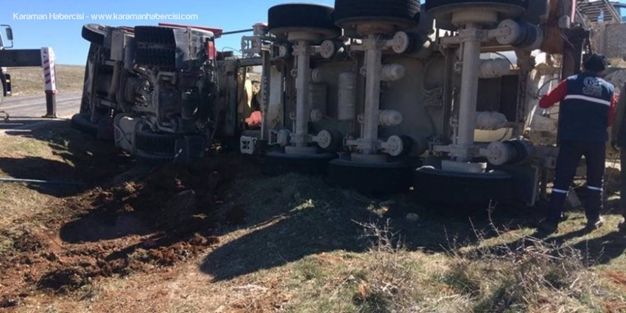 Karaman'da kontrolden çıkan beton mikserinin devrilmesi sonucu meydana gelen trafik kazasında 1 kişi yaralandı