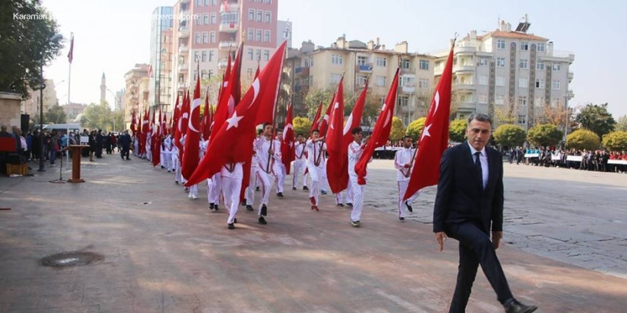Aktekke 15 Temmuz Demokrasi Meydanı'ndaki kutlamalara vatandaşlar büyük ilgi gösterdi. Program, Karaman Valisi Fahri Meral ve Karaman Belediye Başkanı Savaş Kalaycı'nın öğrencilerin ve vatandaşların bayramını kutlamasıyla başladı. Saygı duruşunda bulunulması ve İstiklal Marşı'nın okunmasının ardından bir konuşma yapan Karaman Valisi Fahri Meral, "19 Mayıs 1919'da Gazi Mustafa Kemal Atatürk'ün Samsun'a çıkarak başlattığı Milli Mücadele Türk Milleti'nin inanç ve azmiyle başarıyla sonuçlanmış, 29 Ekim 1923 tarihinde Cumhuriyetin ilanıyla Türkiye Cumhuriyeti Devleti kurulmuştur. Atatürk'ün Türk Milletinin karakterine ve adetlerine en uygun idare Cumhuriyet idaresidir diyerek ilan ettiği Cumhuriyet, Türk Milletine bırakılmış en büyük miras ve vazgeçilmez bir değerdir. Türkiye Cumhuriyeti Milletimizin ortak eseridir. Bu nedenle ülkemiz, aziz milletimiz için olduğu kadar, dünyanın mazlum ve mağdurları için de bir umut ışığı olarak doğmuş ve bu görevi artırarak devam ettirmektedir. Cumhuriyet, Türkiye'nin muasır ve demokratik bir ülke olarak varlığını ve gelişimini sürdürmesinin en önemli güvencesidir. Bu nedenle Cumhuriyetin tüm değerleriyle gelecek kuşaklara aktarılması ve sonsuza kadar yaşatılması ortak sorumluluğumuzdur. Aziz milletimiz, bu bilinç doğrultusunda, kendisini muasır dünyayla buluşturan Cumhuriyeti korumaya ve yaşatmaya kararlıdır. Cumhuriyetimiz, kardeşlik üzerine inşa edilmiş ve halkı bütün farklılıklarıyla kucaklamaktadır. Milli birlik ve beraberliğimizi koruduğumuz sürece Türkiye Cumhuriyeti'nin üzerinde oynanan oyunları bertaraf etmiş oluruz. Bugün gelinen noktada, halkımızın her kesiminin birlik ve bütünlük içinde gösterdiği gayretlerin, demokratik devlet anlayışımızın bir ürünü olarak gelişmemize yansıdığını unutmamalıyız. Devlet ve millet olarak elde ettiğimiz her başarıda, bir zamanlar kağnıları başında, yırtık çarıkları ile düşmana karşı savaşan askerlerimize silah ve cephane götüren isimsiz kahramanların, bu vatan uğruna çarpışarak can veren şehitlerimizin ve gazilerimizin kanları olduğunu unutmadan çalışmaya devam edeceğiz. Bu duygularla Cumhuriyetimizin kuruluşunun 96. yıl dönümünü kutluyor, başta Gazi Mustafa Kemal Atatürk ve İstiklal Savaşı kahramanları olmak üzere bütün şehitlerimizi, gazilerimizi rahmetle şükranla anıyorum" dedi.
