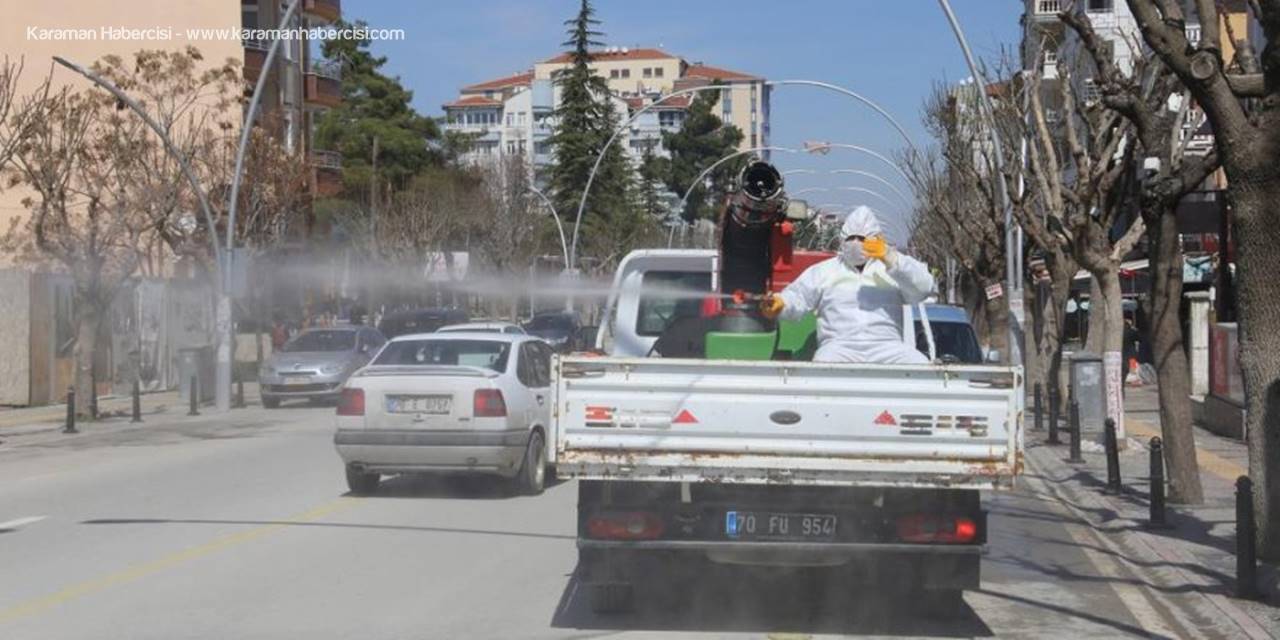 Karaman'da Belediye ekipleri covid-19 salgınına karşı tüm önlem ve tedbirlerini ilk günden itibaren artırarak sürdürüyor. Karaman Belediyesi’nce covid-19 ile mücadele kapsamında kurulan ekip, virüs tehdidini en aza indirmek amacıyla; resmi daireler, okullar, hastaneler, esnaflar, halka açık ortak kullanım alanları, caddeler ve sokaklarda dezenfekte çalışmalarına 7/24 aralıksız bir şekilde devam ediyor.