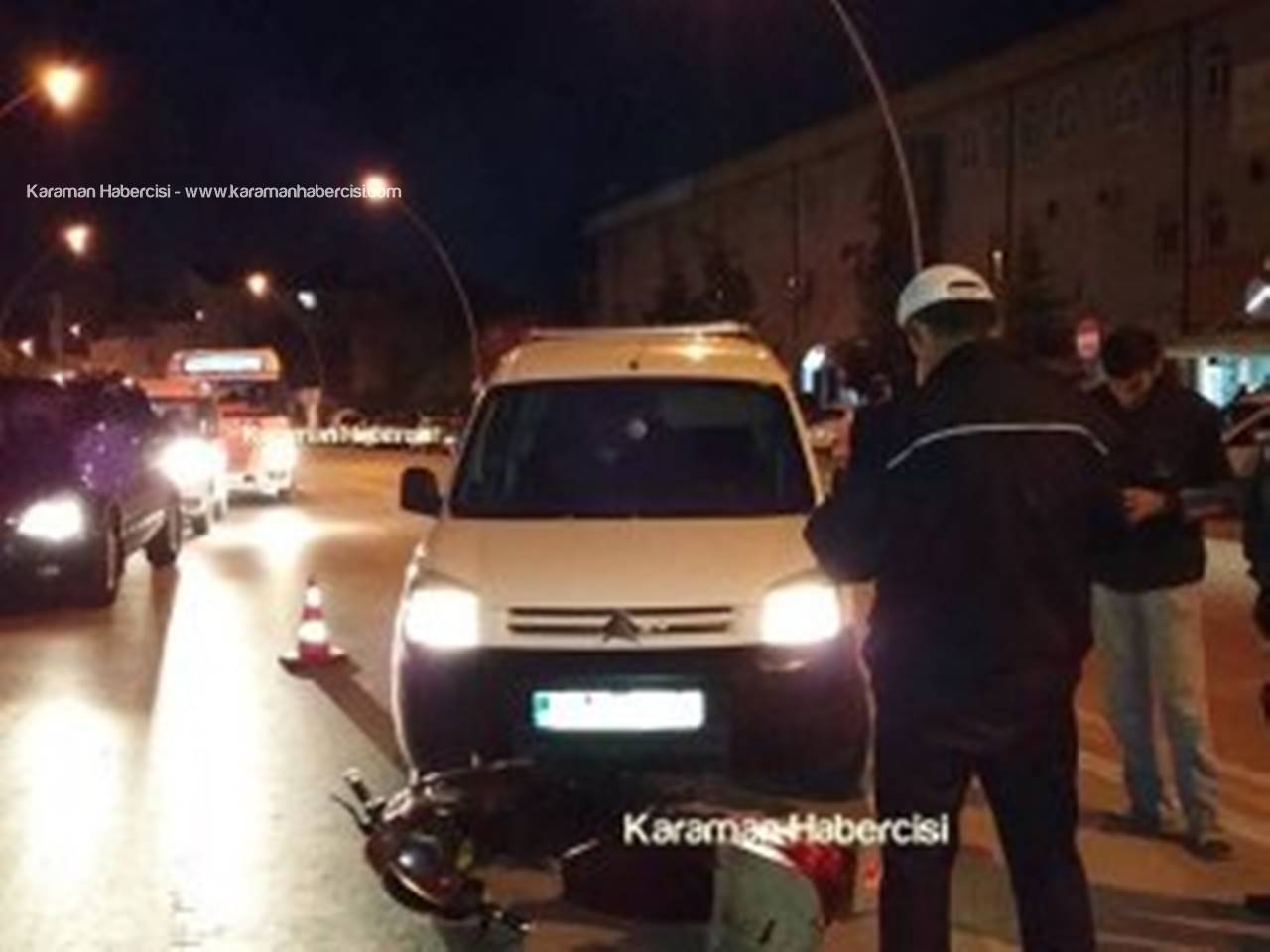 Akşam saatlerinde Şehit Metin Yiğittop Caddesi üzerinden Mut Caddesi’ne çıkmakta olan Özkan Çalışkan idaresindeki 70 FF 391 plakalı kamyonet ile Çarşı istikametine gittiği öğrenilen Beytullah Kabaağaç idaresindeki elektrikli motosiklet tedbirsizlik ve dikkatsizlik sonucu çarpıştı. Bu kazada da motosiklet sürüsü hafif şekilde yaralandı.