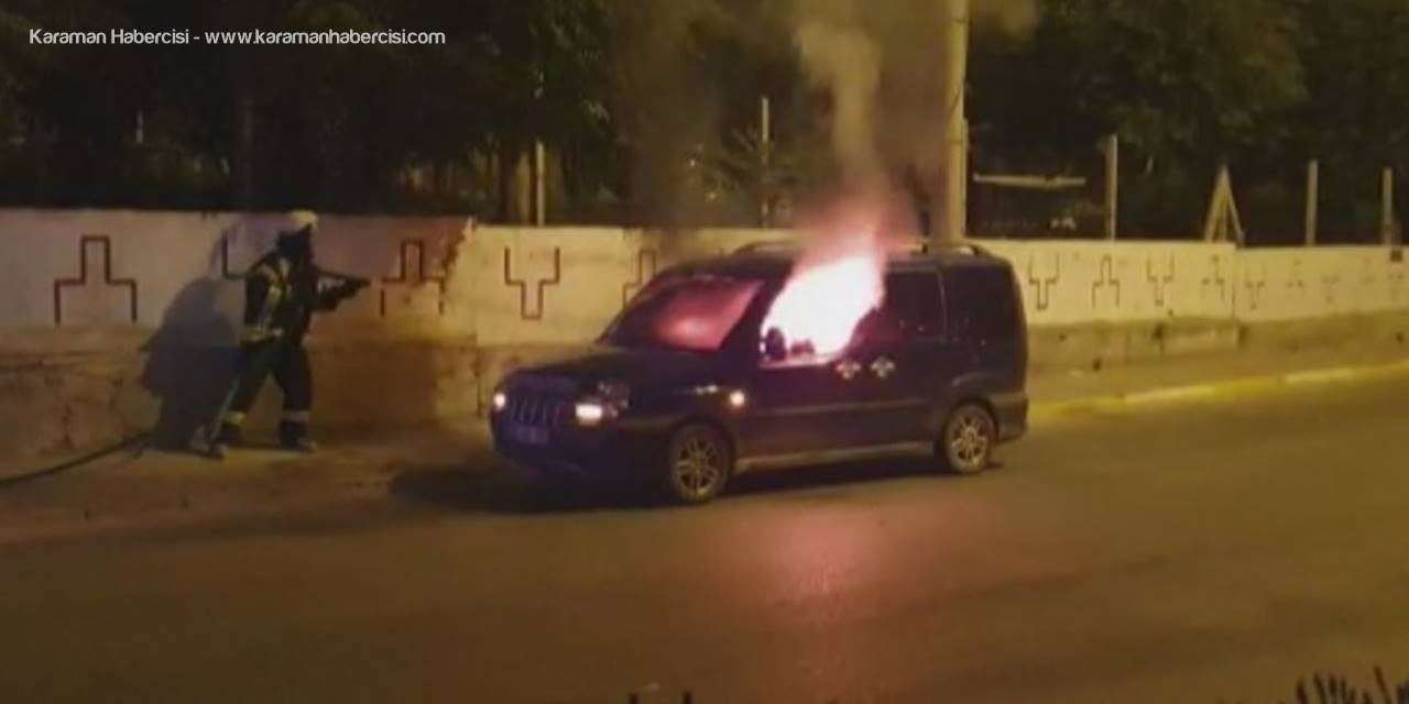 Karaman'da Gece Yarısı Yanan Araç Korkuttu