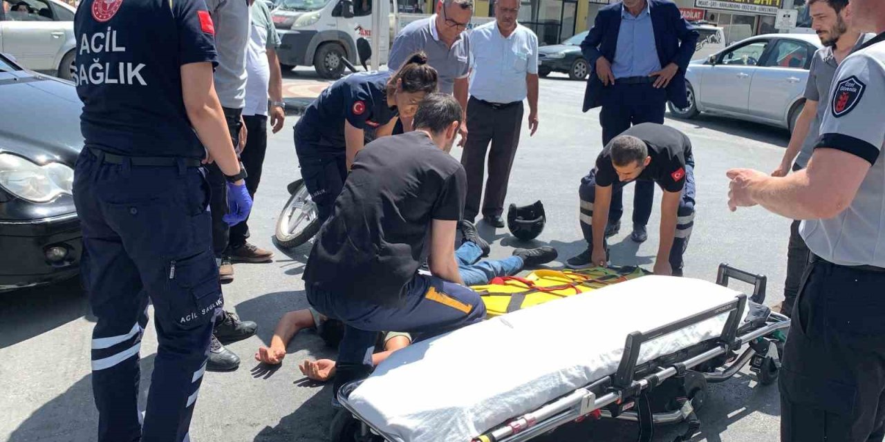 Karaman'da otomobil ile çarpıştıktan sonra yola savrulan motosiklet sürücüsü yaralandı.