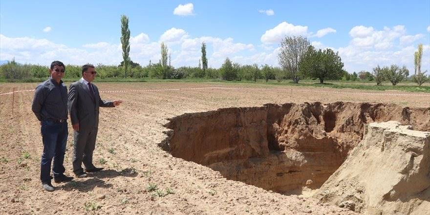 Merkeze bağlı Akçaşehir beldesinde çiftçilik yapan Ümit Çöğürcü, Depeliyer mevkisindeki ayçiçeği ekili tarlasında obruk oluştuğunu fark edince, durumu Tarım ve Orman İl Müdürlüğü ile belediye yetkililerine bildirdi.