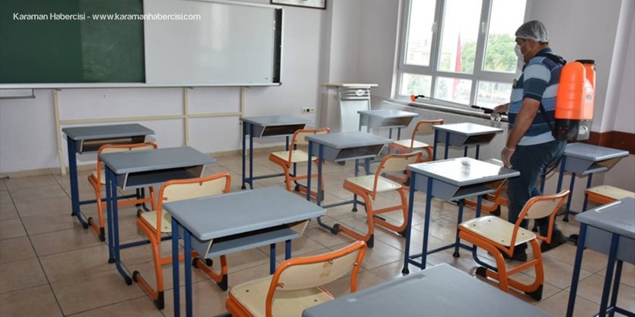 Karamanda yeni tip koronavirüs (Kovid-19) tedbirleri kapsamında, LGS öncesi bütün okullarda dezenfekte ve temizlik çalışması yapıldı.