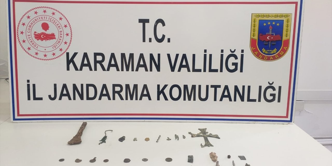 Karaman'ın Ermenek ilçesinde otomobilinin bagajında otların arasına saklanmış tarihi eser niteliği taşıyan çok sayıda obje ele geçirilen zanlı gözaltına alındı.