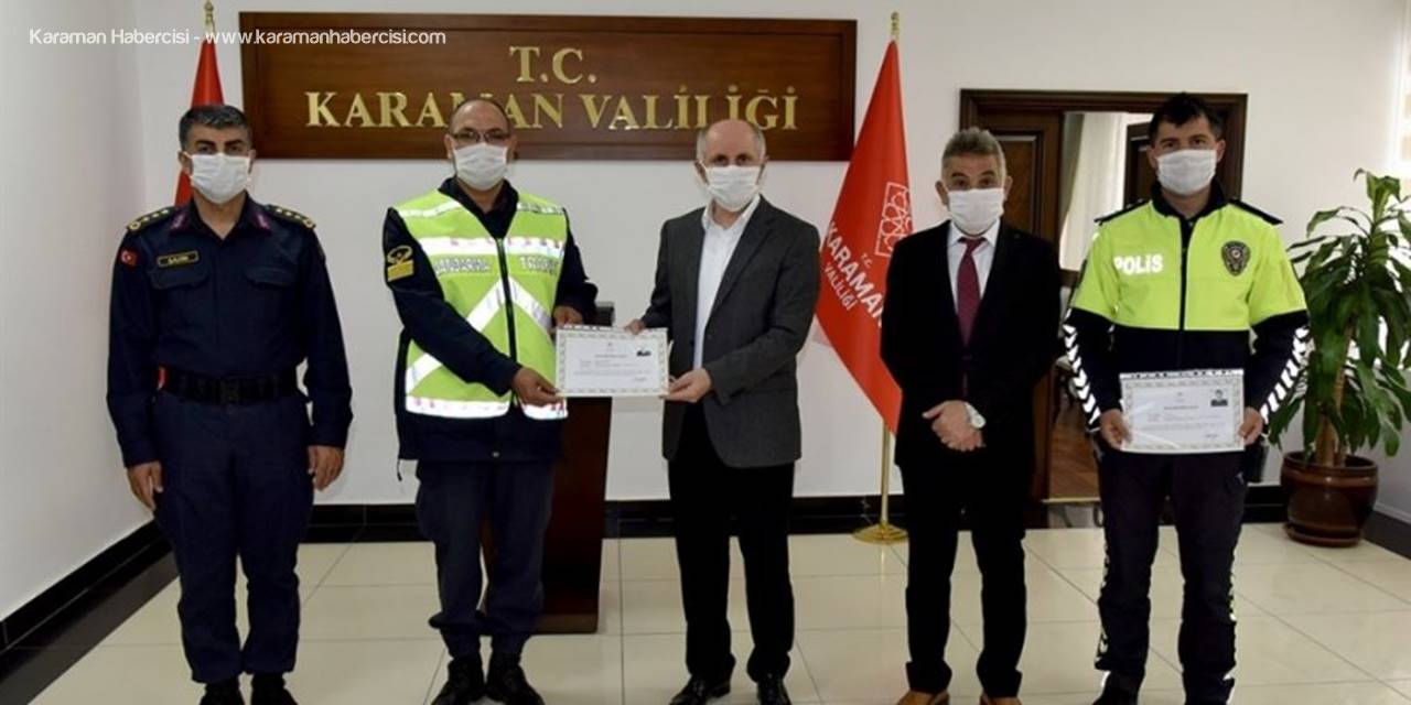 Karaman Valisi Fahri Meral, özverili çalışmalarından dolayı emniyet ve jandarma trafik personelini ödüllendirdi.