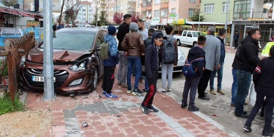 Alınan bilgiye göre, Z.K yönetimindeki 33 B 7204 plakalı otomobil, sürücünün aniden yola çıkan çocuklara çarpmamak için direksiyonu kırması sonucu önce park halindeki otomobile sonrada kaldırımdaki aydınlatma direğine çarparak durdu. Kazada isimleri öğrenilemeyen 13 yaşlarındaki 2 çocuktan birisi yere düşerek, diğeri de otomobilden koparak fırlayan parçanın isabet etmesi üzerine hafif şekilde yaralandı.