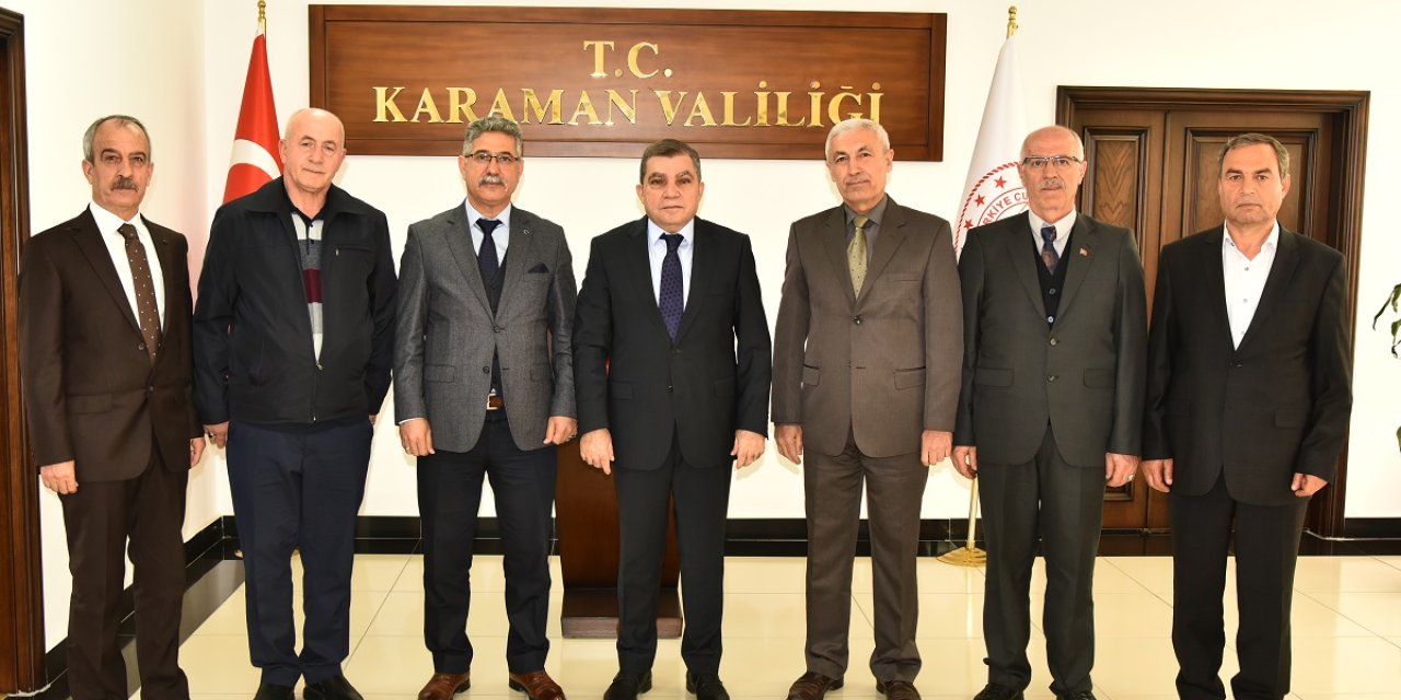 Vali Mehmet Alpaslan Işık, Türkiye Polis Emeklileri Karaman Şube Başkanı Hüsamettin Yıldırım ve yönetim kurulu üyelerini kabul etti.