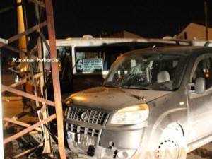 Kazada yolcusu olmayan ve sanayiye gittiği öğrenilen Durmuş Ali Orhan idaresindeki 70 M 0049 plakalı minibüs ile Mustafa Oğuz Öner idaresindeki 70 DN 531 plakalı kamyonet tipi araç çarpıştı. Kazada her iki araç önce birbirlerine daha sonra da elektrik trafosu bulunan direğe doğru gittiler.