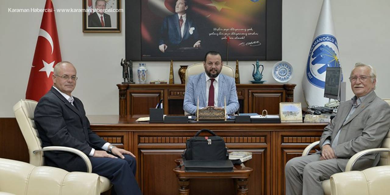 Karamanoğlu Mehmetbey Üniversitesi (KMÜ) Rektörü Prof. Dr. Mehmet Akgül, Karaman’ın tanınmış şair ve yazarlarından Hasan Özünal ile Hikmet Elitaş’ı makamında kabul etti.