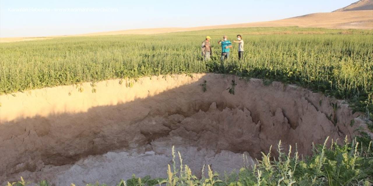Karapınar ilçesinde Temmuz ayında ilçeye 10 kilometre mesafede bulunan Mısırlı Yaylasında pancar ekili tarlada 4 metre çapında bir obruk oluşuştu.