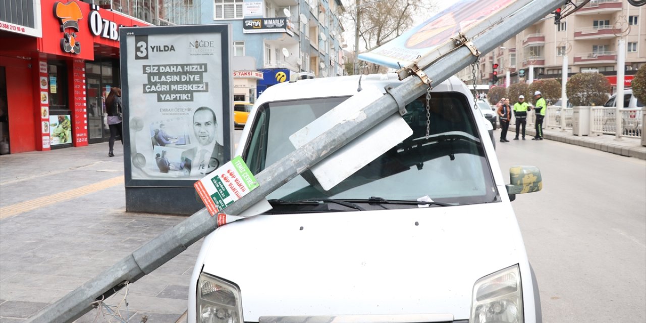 Dr. Sami Yağız Caddesi'ndeki aydınlatma direği, park halindeki hafif ticari aracın üstüne düştü.