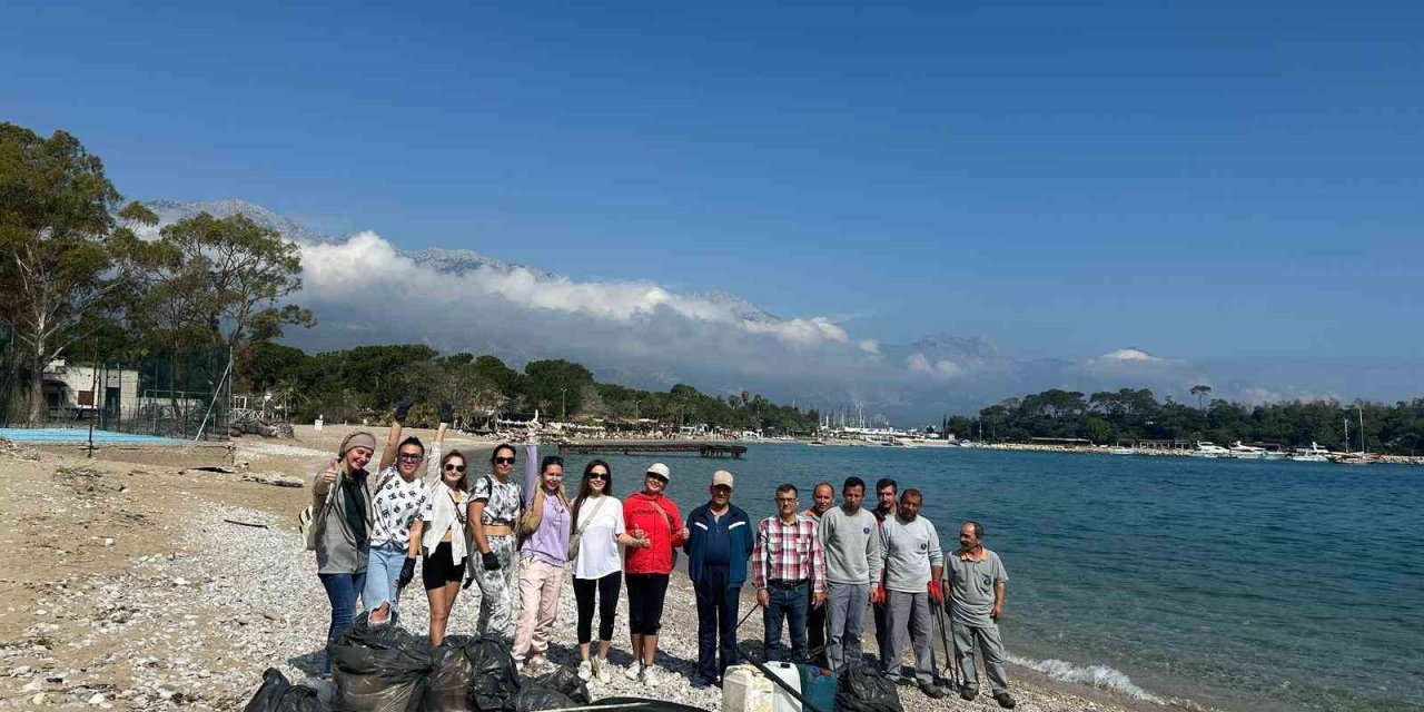 Kemer'de yaşayan yabancı uyruklu kadınlar, Kemer Belediyesi Temizlik İşleri Müdürlüğü ve İklim Değişikliği ve Sıfır Atık Müdürlüğü ekipleri ile Çalış Tepesi ile Ayışığı Parkı arasında bulunan koy ve ormanlık alanda temizlik yaptı.