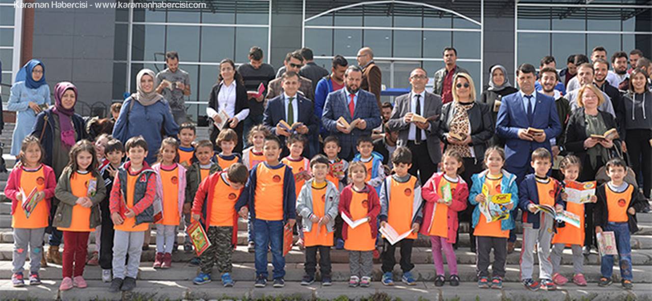 Kütüphane Haftası nedeniyle düzenlenen etkinliğe KMÜ Rektörü Prof. Dr. Mehmet Akgül, İl Halk Kütüphanesi Müdürü Adile Uyar, Karaman Gevher Hatun Anaokulu’nun minik öğrencileri, üniversite personeli, davetliler ve çok sayıda öğrenci katıldı.