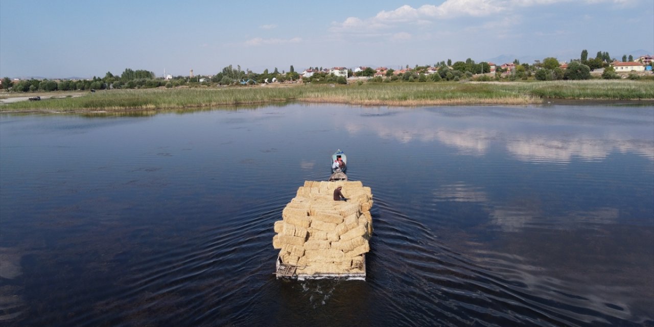 Beyşehir Gölü'nün tarımsal faaliyetlerde de değerlendirilen dört tarafı tatlı sularla çevrili Çeçen Adası'nda hasat döneminin sonuna gelindi.
