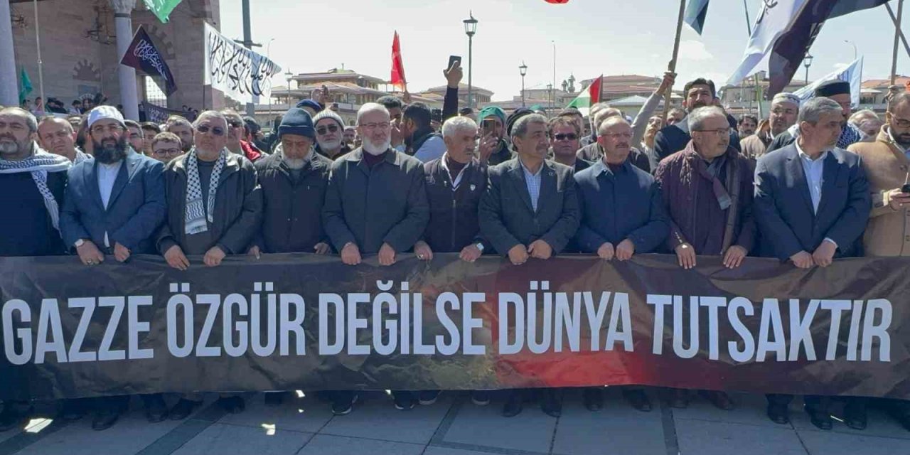 Konya'da Gazze'ye destek için "Gazze Ölüyor Ayağa Kalk" yürüyüşü düzenlendi.