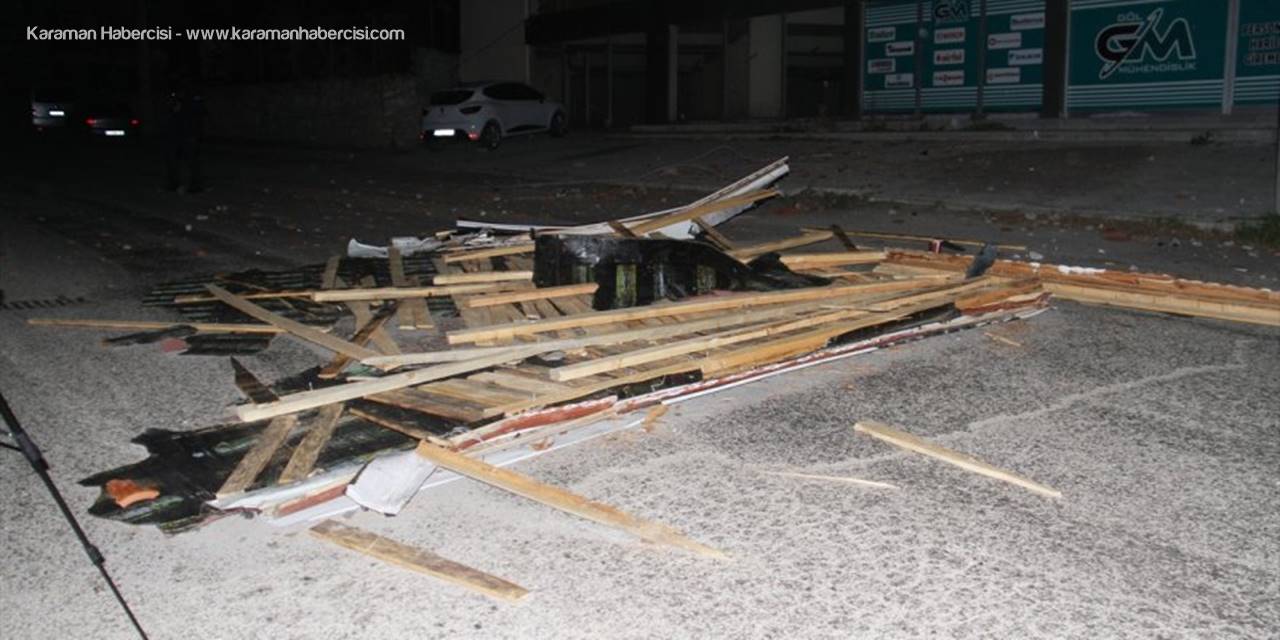 Elektrik hatlarını koparıp yol üzerine düşen çatı, park halindeki 3 araca zarar verdi. Elektrik tellerinin kopması nedeniyle mahalle de bir süre karanlıkta kaldı.