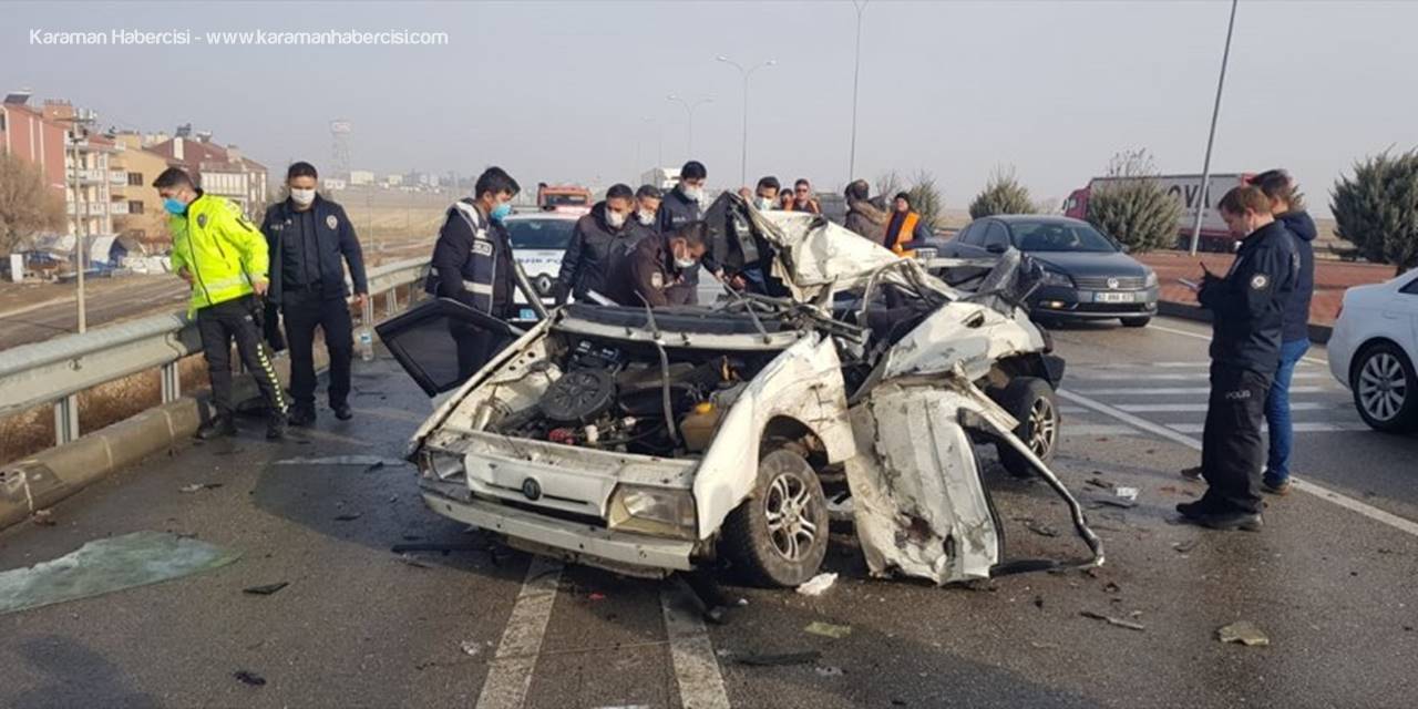 Konya'da Otomobilin Kaza Yapan Araçlara Çarpması Sonucu 1'i Polis 3 Kişi Yaralandı