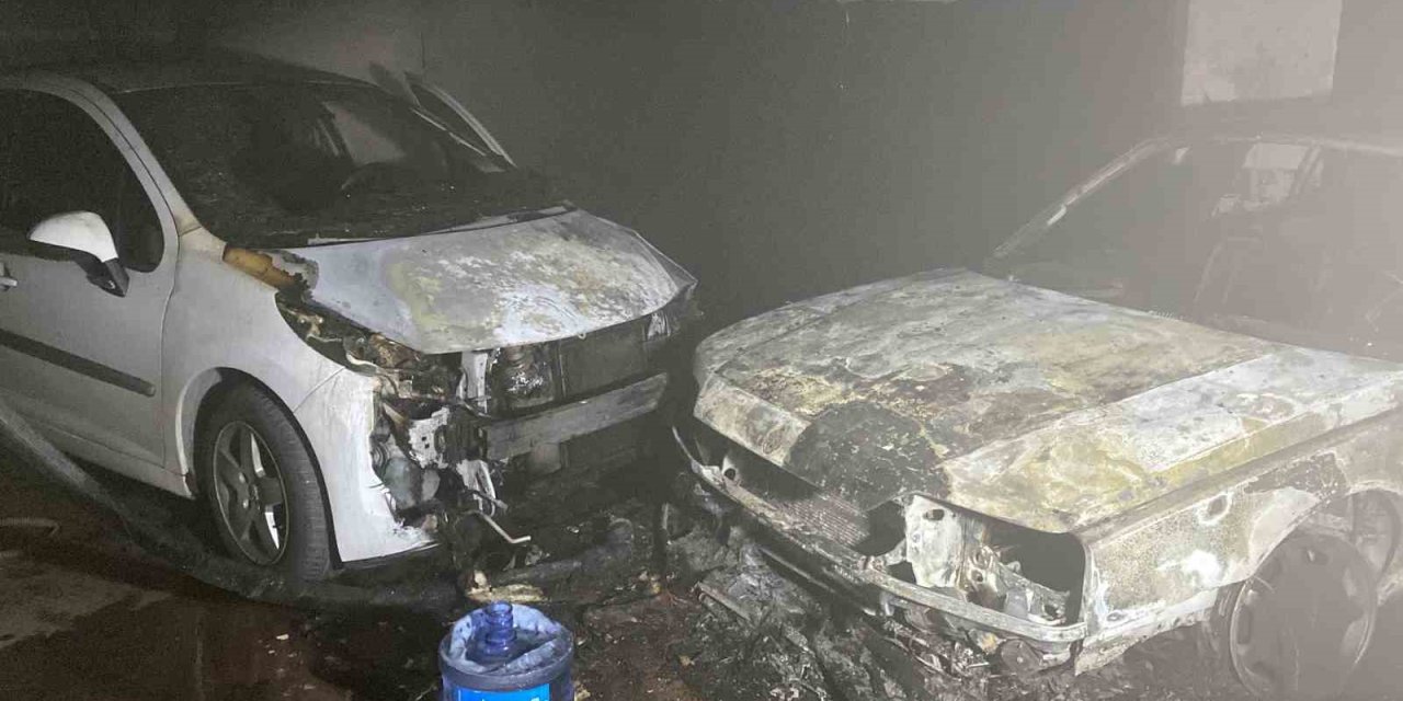 Konya’da Sitenin Otoparkında 2 Otomobil Yandı